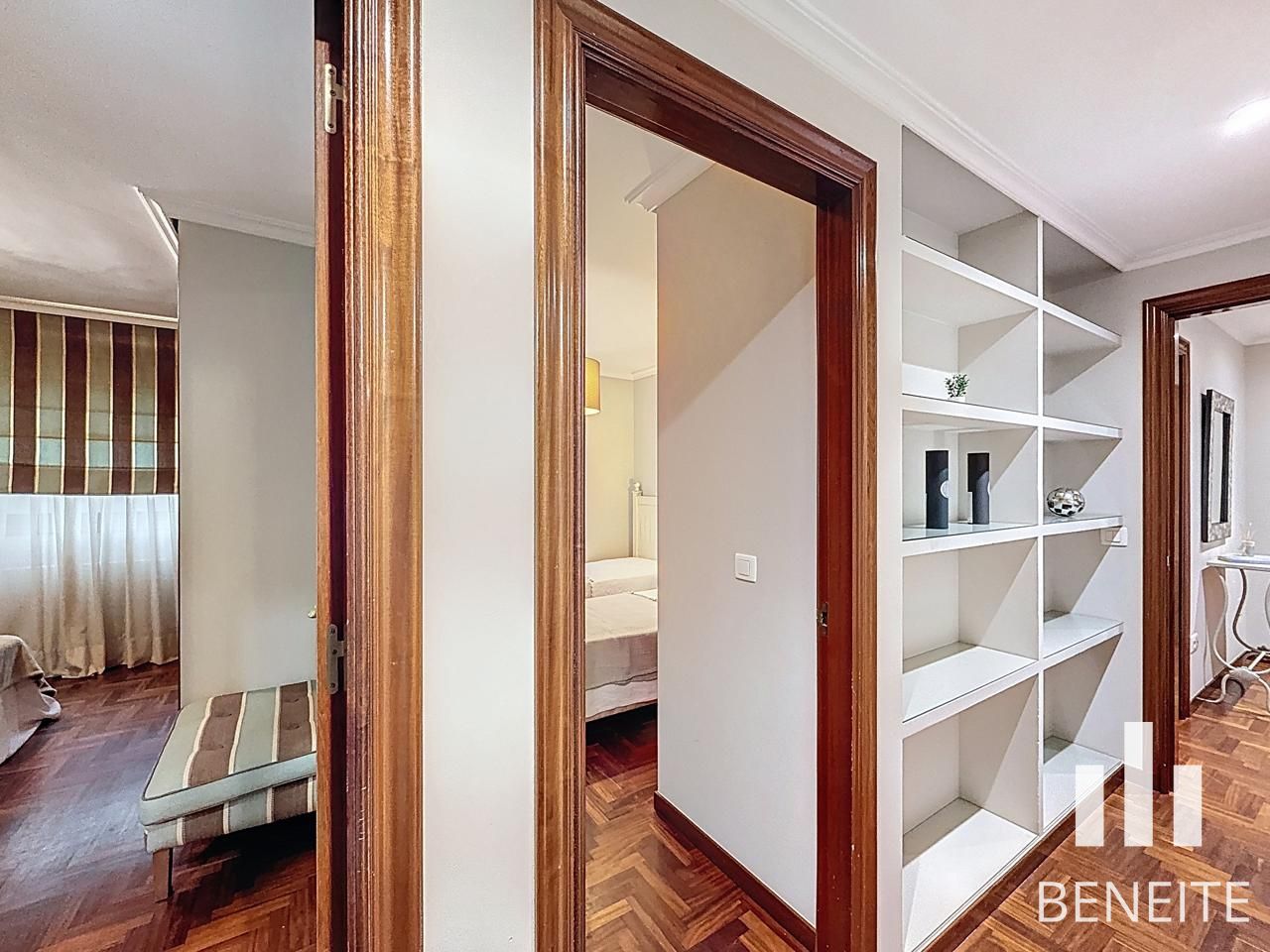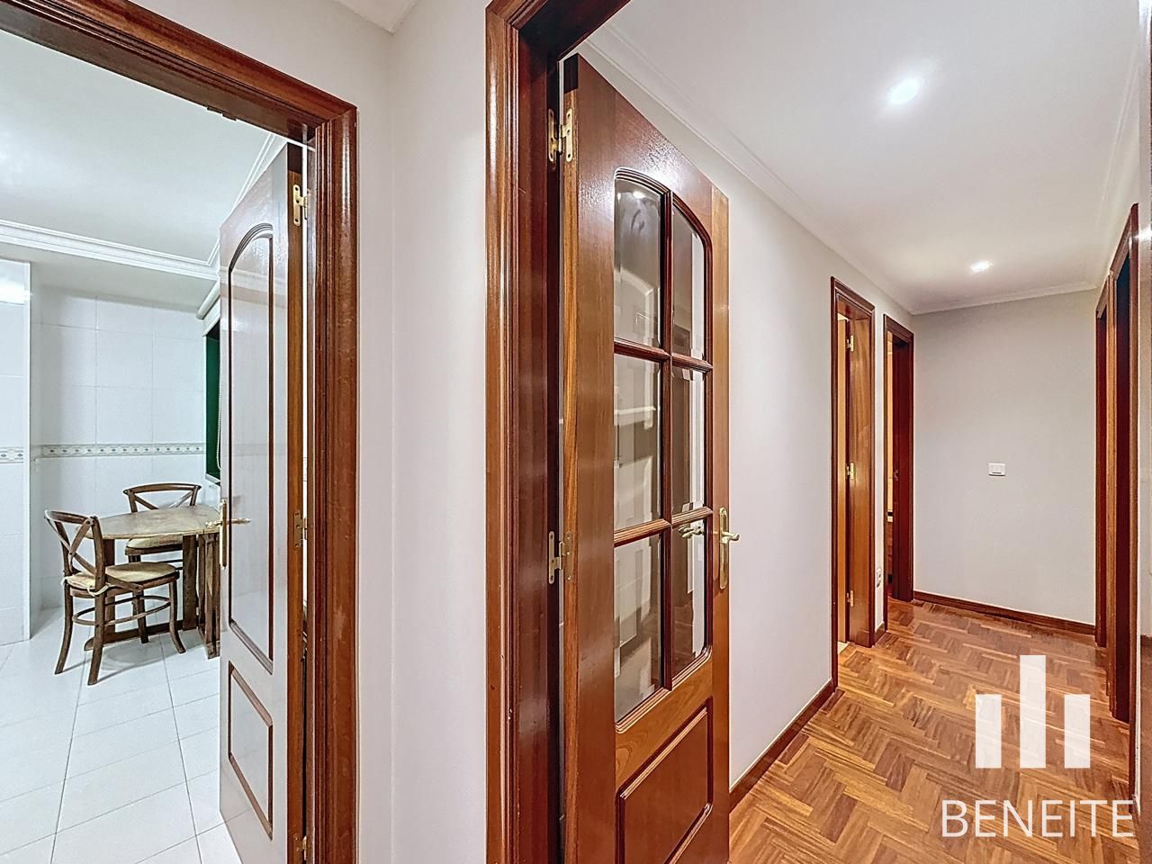Dos de los dormitorios y el salón son exteriores, mientras que la cocina y el dormitorio más pequeño orientan hacia un patio interior amplio y usable, perfecto para desayunos, comidas o cenas.